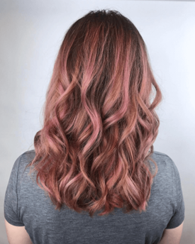 For anyone wanting the look of lived-in haircolor instantly, there’s smokey rose gold. This color is about as real as it gets and doesn’t demand the look of perfection, making it a great option for those wanting to try the rose gold trend with a busy lifestyle.