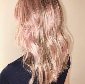Pour celles qui recherchent un look avec effet délavé en une seule visite au salon, il y a les cheveux Rose Gold façon Smokey. Ce style reste très naturel et n'exige pas la perfection. C'est une option parfaite pour celles voulant essayer la tendance Rose Gold, mais en ayant peu de temps pour l'entretien.