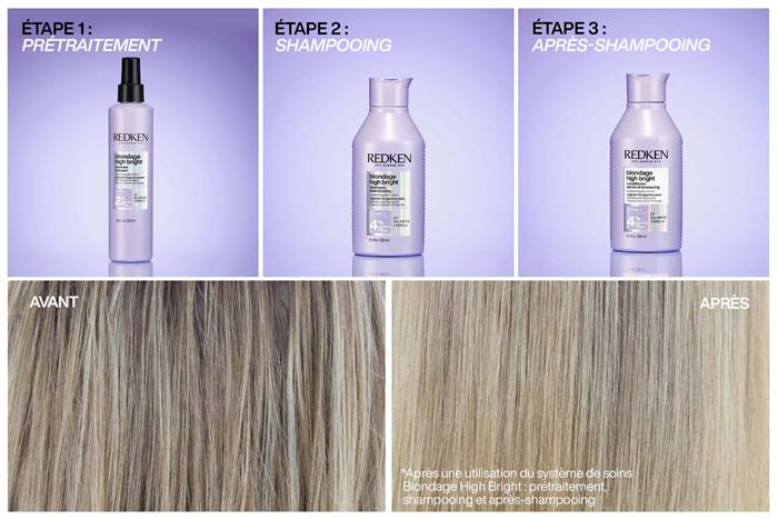 Ce régime est la réponse de Redken aux blondes qui perdent de l’éclaircissement et de la luminosité dans les semaines entre les visites au salon. Ce rituel, qui comprend le prétraitement, le shampooing et l'après-shampooing, permet à vos cheveux blonds de rester éclaircis et lumineux, et ce, après une seule utilisation selon ce qu’affirment 92 % des stylistes. Blondage High Bright™ contient de la vitamine C ainsi que notre complexe Brightening Care, formant un duo dont les agents chélateurs procurent des résultats instantanés. En UNE seule utilisation, vous pouvez ainsi avoir des cheveux blonds plus lumineux tout en refermant la cuticule afin de lutter contre les cheveux qui ternissent.